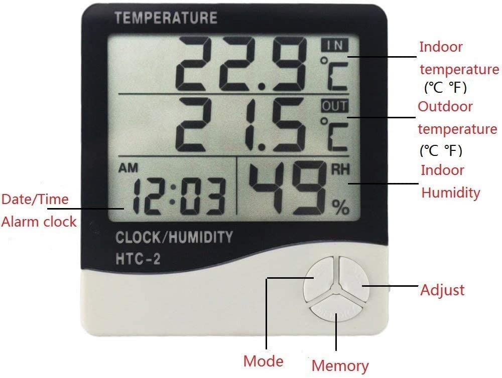 · Indoor & outdoor temperature display, indoor humidity display and time display and large LCD display, multi-function.
