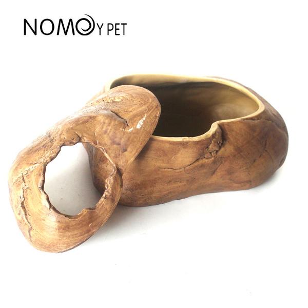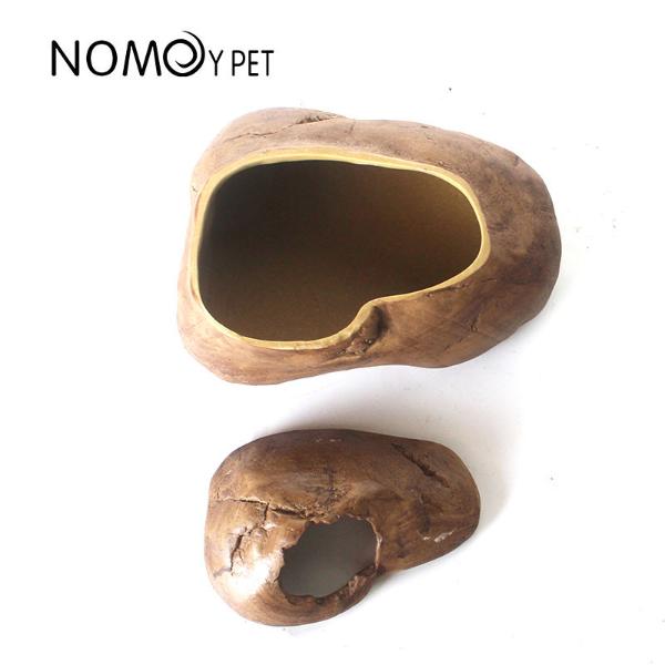 The lizard resin rock hiding place has gentle slope, easy to climb, and the lid can be opened or closed, pets can come in and out through the hole in the lid.