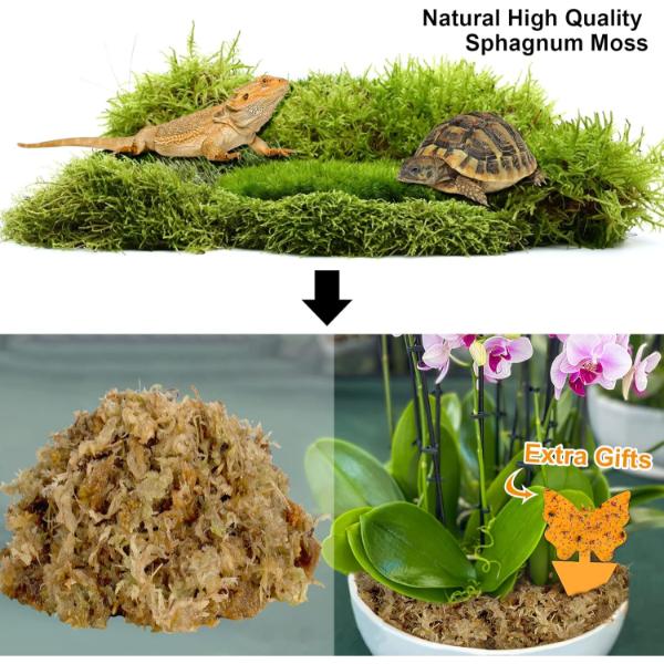 This sphagnum moss works for both plants and reptiles. Use it as sphagnum moss for reptiles in terrariums, or as orchid potting mix and growing medium for indoor plants.