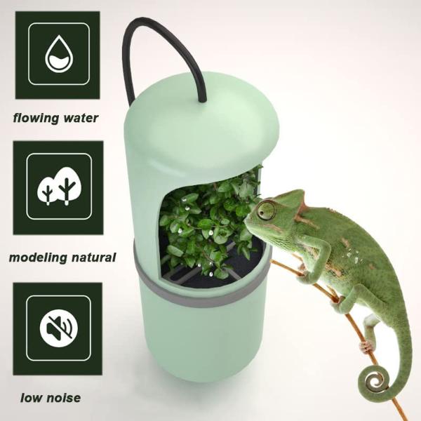 This reptile automatic fountain is specially designed for water supply for reptile pets. The circulating water falls along the leaves, simulating the flow of spring water in the wild, and induces pets to drink water actively. It's not just a water bowl, it's a decoration for a reptile breeding box.