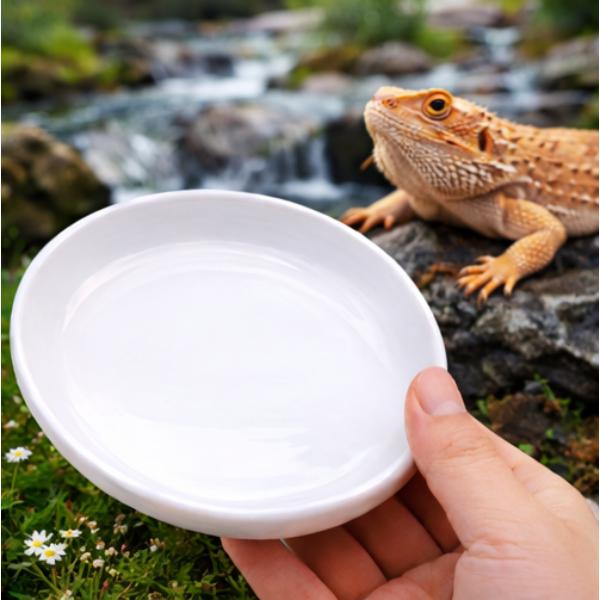 • Made from high-quality, non-toxic ceramic material, this shallow dish is ideal for serving vegetables, fruits, pellets, live food, or water.