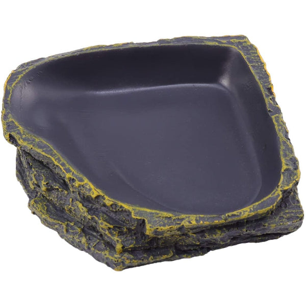 - Reptile Feeding Bowl Durable Resin Feeding Plate Rock Shape Food Water Feeding Dish for Lizard Gecko Tortoise