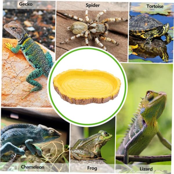 Tortoise feeder color of the bowl is close to the real tree, can match the living environment,reptile feeding basin.